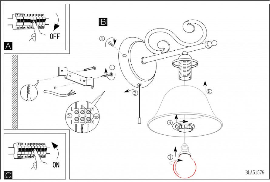 Цоколь E14 с максимальной мощностью лампы 40 Вт в который подойдут лампы типа накаливания или светодиодная (LED). Плафоны состоят из таких материалов, как стекло. Материал арматуры: металл.