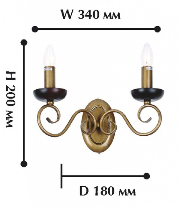 Цоколь E14 с максимальной мощностью лампы 60 Вт в который подойдут лампы типа накаливания или светодиодная (LED). Материал арматуры: металл, дерево.