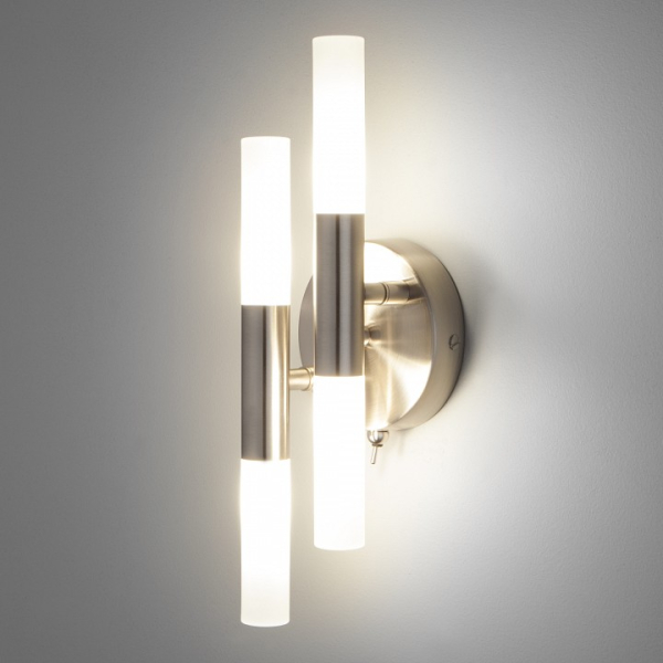 Изделие 551/4 со встроенным выключателем от российского бренда Bogates относится к коллекции Bastone и отлично подойдет для настенной установки прихожей, оформленной в современном стиле. Бра Bogates Bastone 551/4 с цилиндрическими плафонами осветит помещение площадью 0.7 кв. м. Для устройства рекомендуется использовать галогеновые лампы с цоколем G4 и мощностью 3 W. Основными материалами для производства используется пластик, металл и акрил. Преимущественно представляется в цвете Белый и Сатиновый никель.