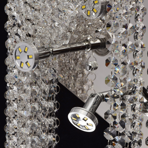 Изделие 437022005 от немецкого бренда Chiaro относится к коллекции Кларис и отлично подойдет для настенной установки в гостиной, оформленной в стиле арт-деко. Осветительный элемент встроен в конструкцию и не требует приобретения дополнительных лампочек. Основными материалами для производства используется хрусталь и металл. Преимущественно представляется в цвете Хромовый, Серебристо-стальной и Прозрачный.