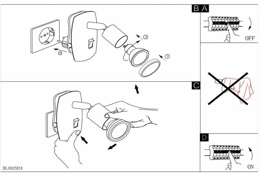 Преобладающий цвет арматуры белый. Лампы в комплекте: светодиодная (LED) GU10. Светильник имеет слабую защиту от влаги и пыли — IP20 и предназначен для использования в домашних интерьерах с умеренной влажностью.