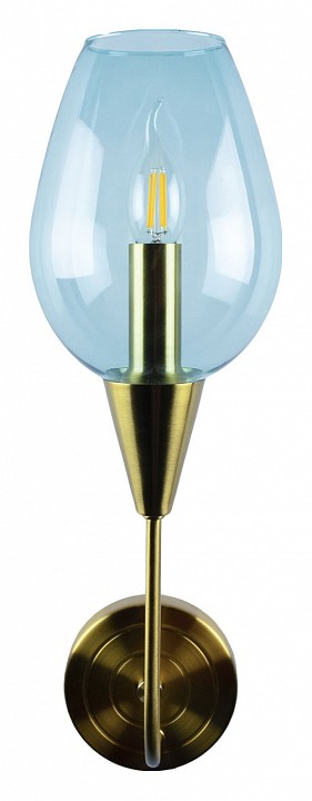 Форма плафона колокол сходящийся, цвет плафона голубой, цвет арматуры латунь. Лампы в комплекте: отсутствуют. Светильник имеет слабую защиту от влаги и пыли — IP20 и предназначен для использования в домашних интерьерах с умеренной влажностью.