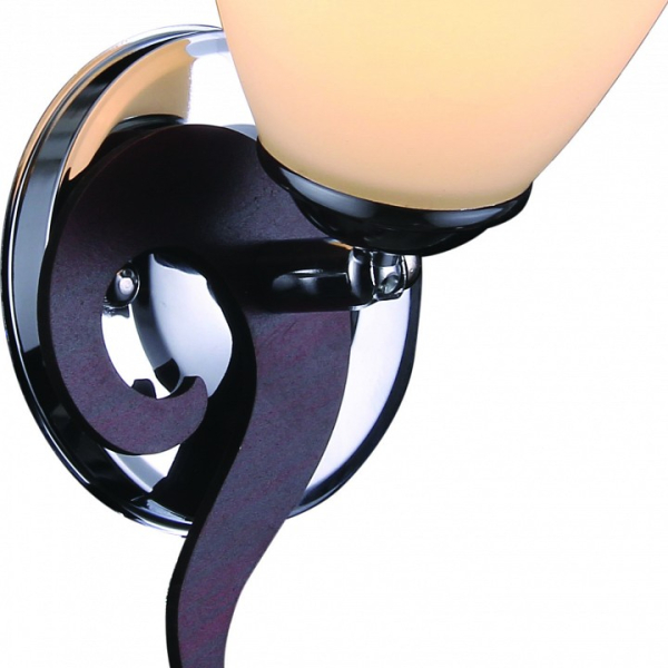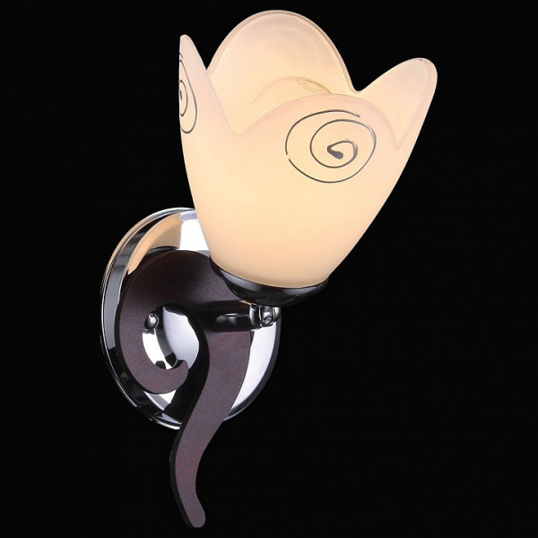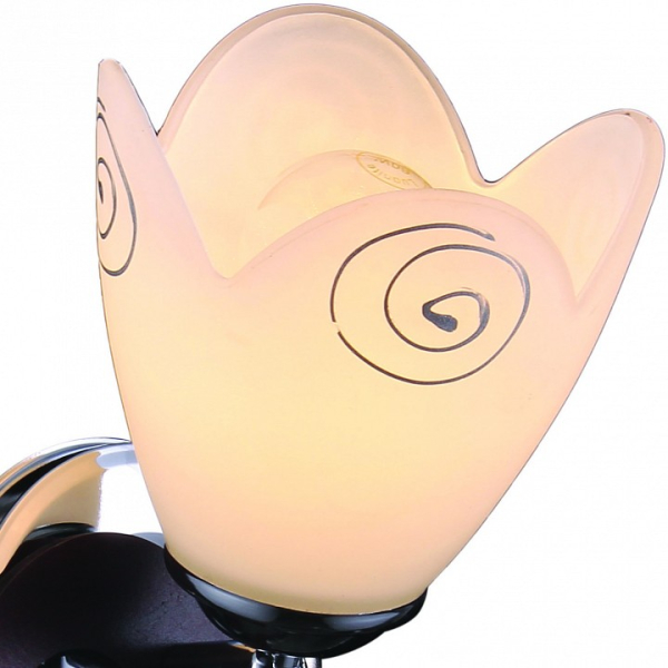 Форма плафона цветок тюльпан, цвет плафона белый, цвет арматуры коричневый, хром. Лампы в комплекте: отсутствуют. Светильник имеет слабую защиту от влаги и пыли — IP20 и предназначен для использования в домашних интерьерах с умеренной влажностью.
