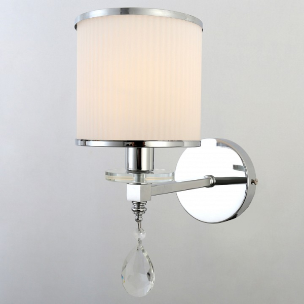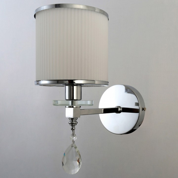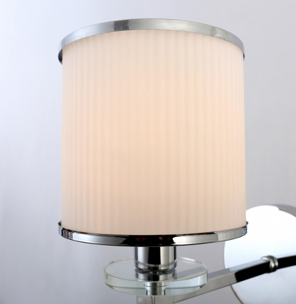 Форма плафона цилиндр круглый, цвет плафона белый, неокрашенный, цвет арматуры хром. Лампы в комплекте: отсутствуют. Светильник имеет слабую защиту от влаги и пыли — IP20 и предназначен для использования в домашних интерьерах с умеренной влажностью.