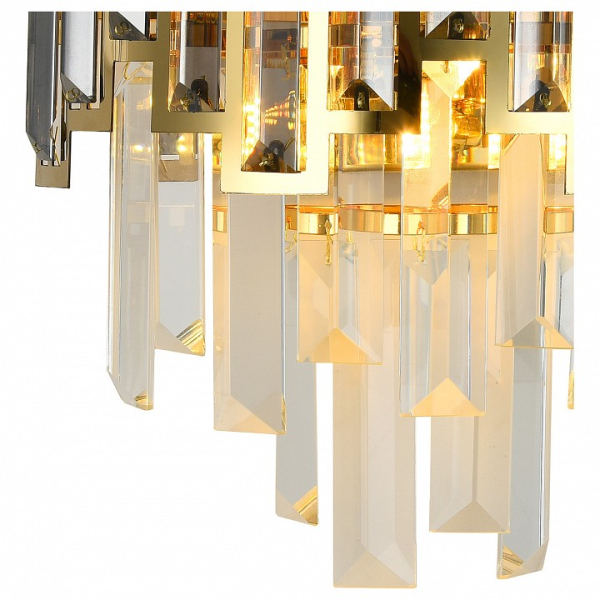 Форма плафона полуцилиндр, цвет плафона неокрашенный, цвет арматуры золото. Лампы в комплекте: отсутствуют. Светильник имеет слабую защиту от влаги и пыли — IP20 и предназначен для использования в домашних интерьерах с умеренной влажностью.