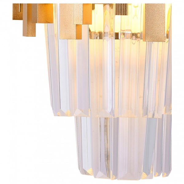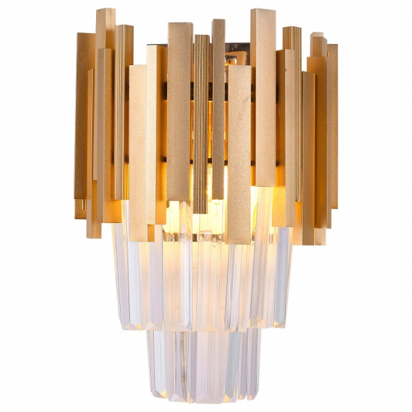 Форма плафона полуцилиндр, цвет плафона неокрашенный, цвет арматуры золото. Лампы в комплекте: отсутствуют. Светильник имеет слабую защиту от влаги и пыли — IP20 и предназначен для использования в домашних интерьерах с умеренной влажностью.