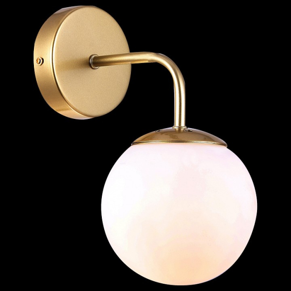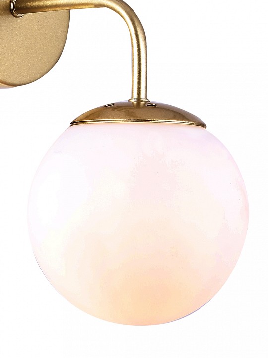 Форма плафона сфера, цвет плафона белый, цвет арматуры золото. Лампы в комплекте: отсутствуют. Светильник имеет слабую защиту от влаги и пыли — IP20 и предназначен для использования в домашних интерьерах с умеренной влажностью.