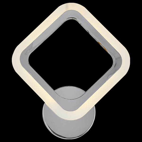 Форма плафона призма квадратная, цвет плафона белый, цвет арматуры хром. Лампы в комплекте: светодиодная. Светильник имеет слабую защиту от влаги и пыли — IP20 и предназначен для использования в домашних интерьерах с умеренной влажностью.