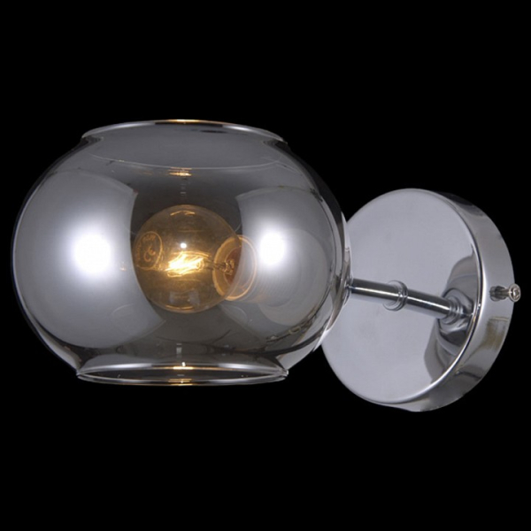 Форма плафона сфера, цвет плафона дымчатый, цвет арматуры хром. Лампы в комплекте: отсутствуют. Светильник имеет слабую защиту от влаги и пыли — IP20 и предназначен для использования в домашних интерьерах с умеренной влажностью.