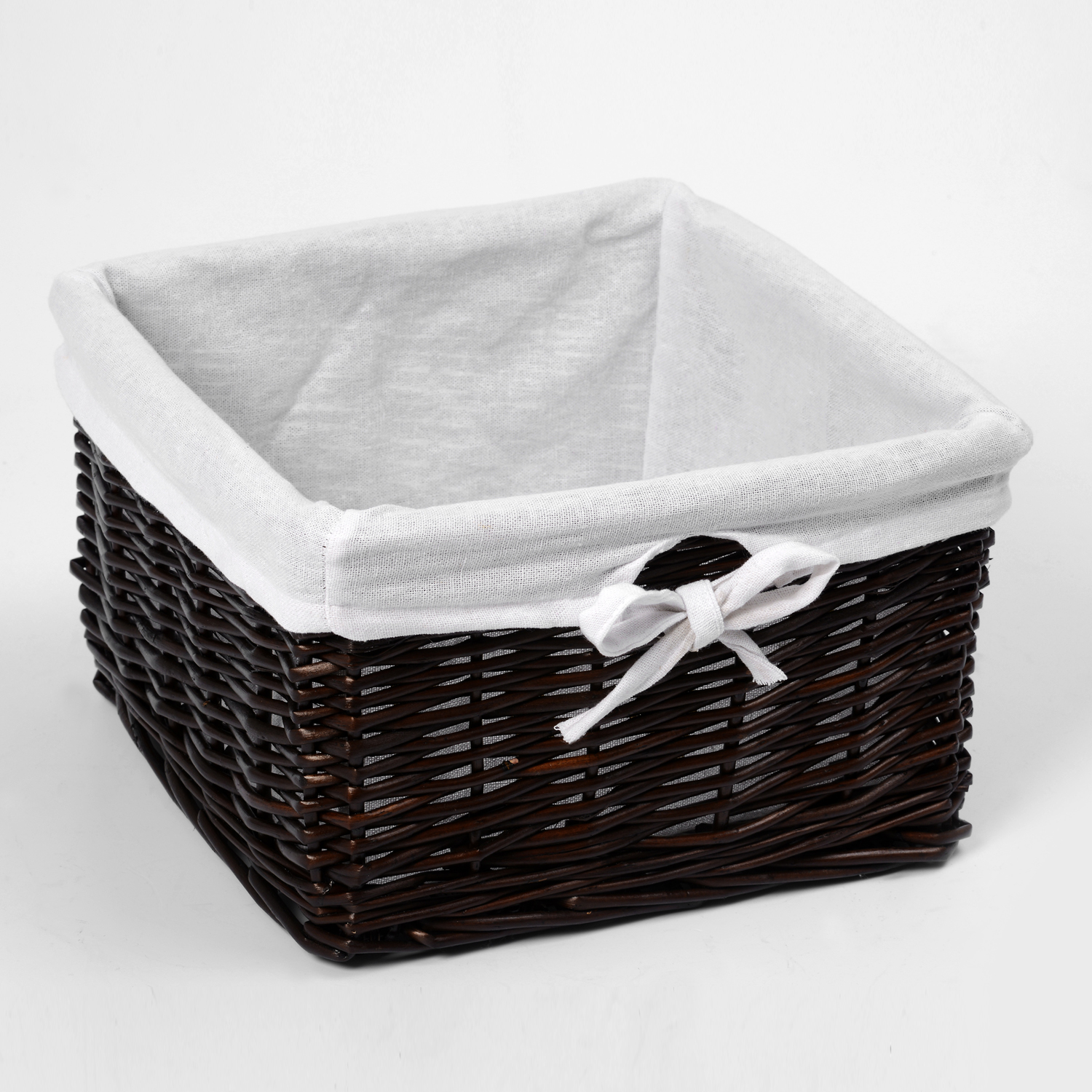 Назначение: Плетеная корзина. Материал: Прутья ивы, текстиль. Покрытие: Водоотталкивающее покрытие. Описание: Размер: 35 х 35 х 20 см* Съемный чехол можно стирать в машинке при температуре не выше 60 градусов.