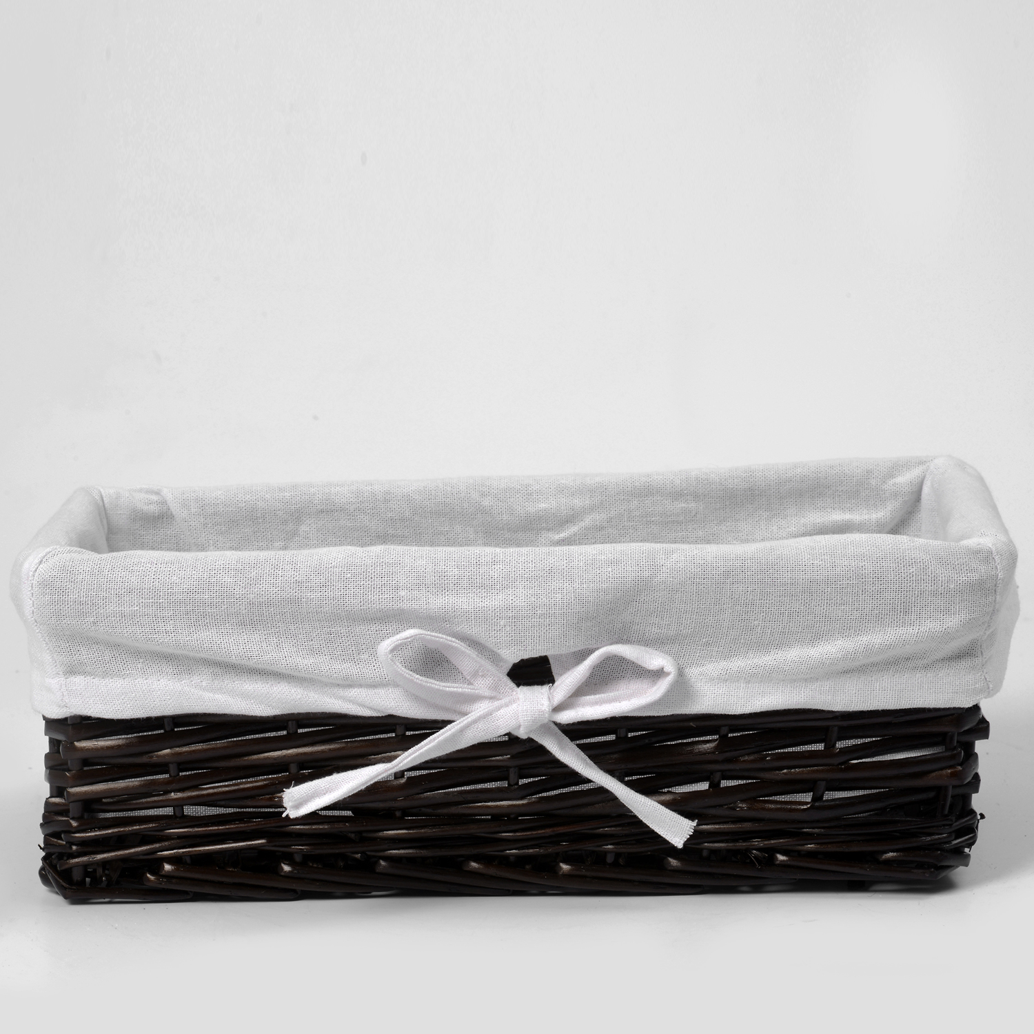 Назначение: Плетеная корзина. Материал: Прутья ивы, текстиль. Покрытие: Водоотталкивающее покрытие. Описание: Размер: 42 х 25 х 14 см* Съемный чехол можно стирать в машинке при температуре не выше 60 градусов.