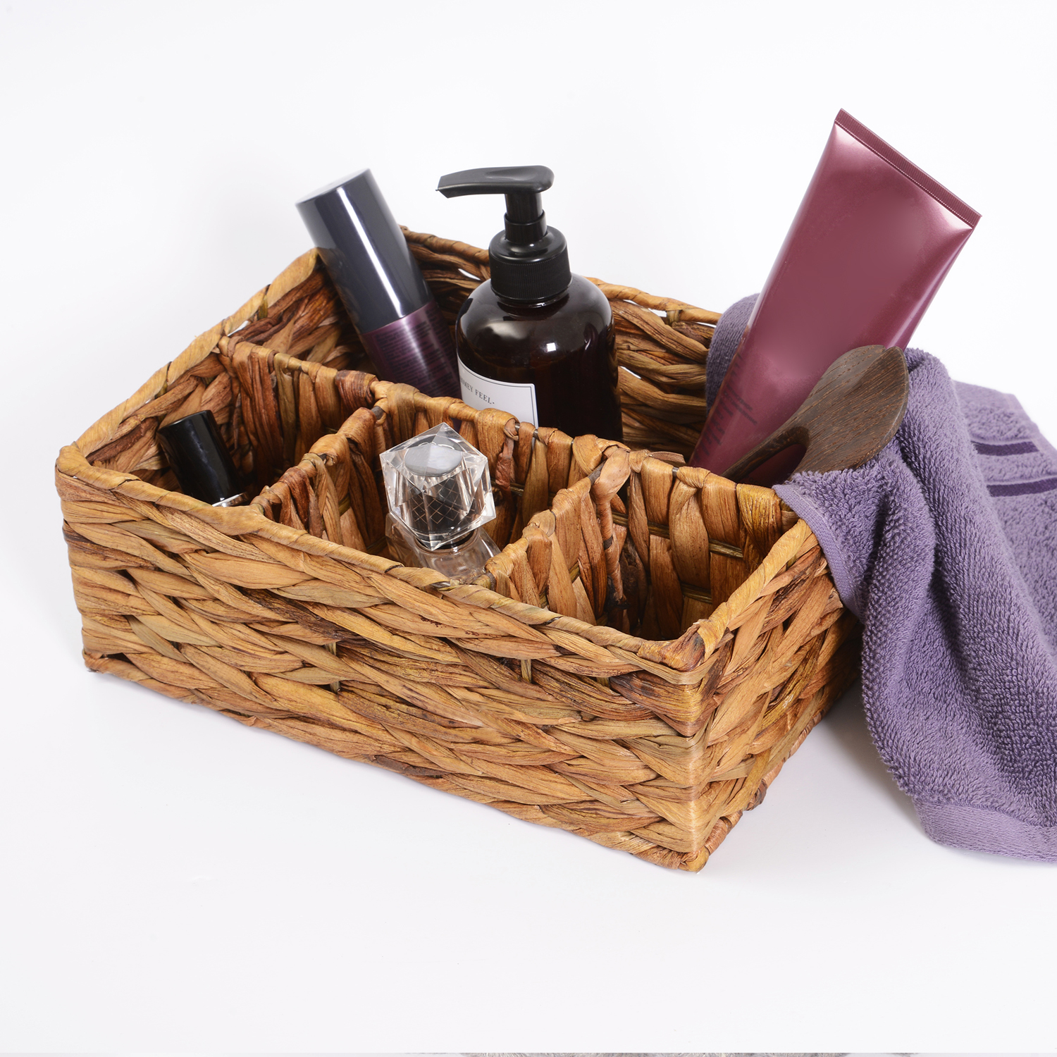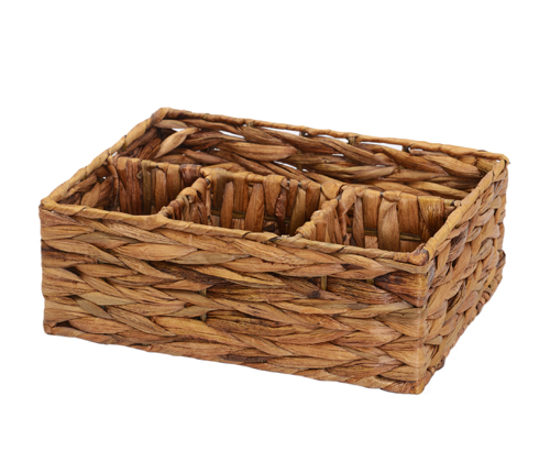 Назначение: Плетеная корзина. Материал: Водный гиацинт.Покрытие: Водоотталкивающее покрытие. Описание: Размер: 27,5 х 20,2 х 10,0 см*