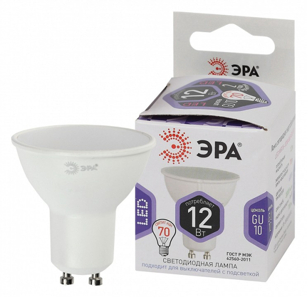 Лампа светодиодная Эра GU10 12Вт 6000K Б0049076