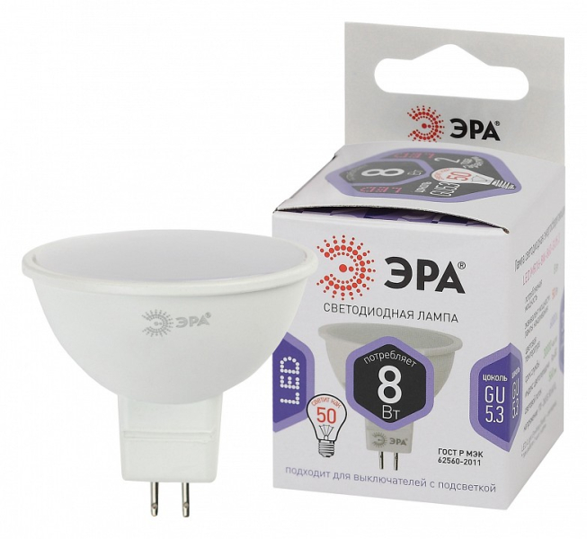 Лампа светодиодная Эра GU5.3 8Вт 6000K Б0049071