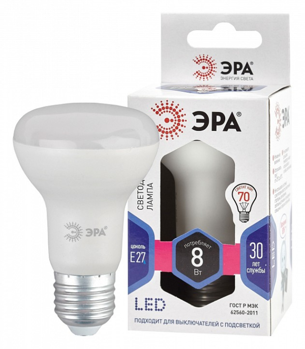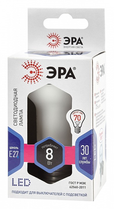 Лампа светодиодная Эра STD E27 8Вт 6000K Б0048024