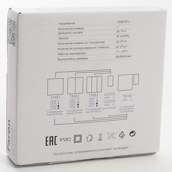 Выключатель беспроводной одноклавишный Feron Tm 81 41719
