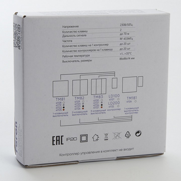 Выключатель беспроводной двухклавишный Feron Tm 82 41726