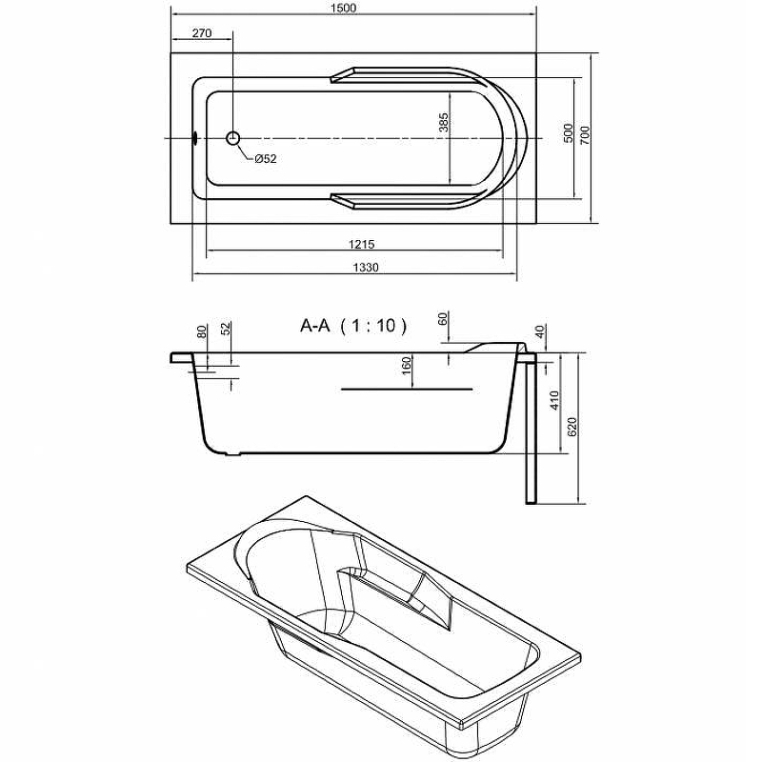 Акриловая ванна Cersanit Santana 150x70 63349+K-RW-SANTANA*150n с каркасом