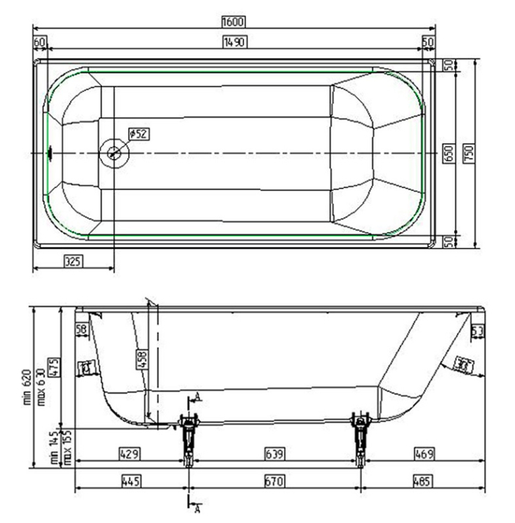 Ванна чугунная Wotte Start 1600x750UR с ножками