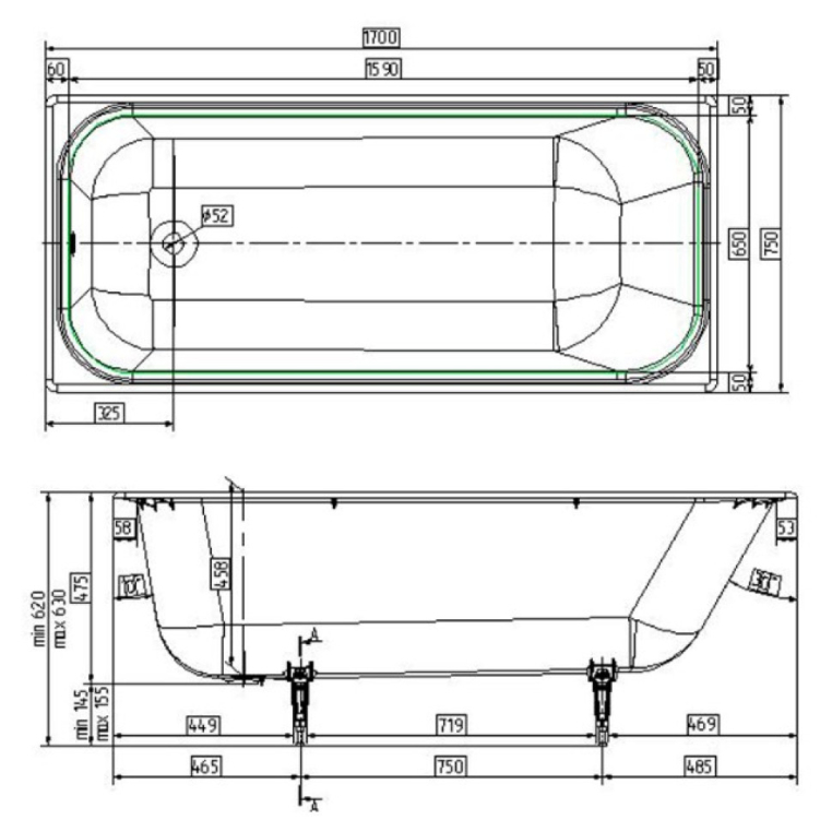 Чугунная ванна Wotte Start 170x75 с ножками в комплекте