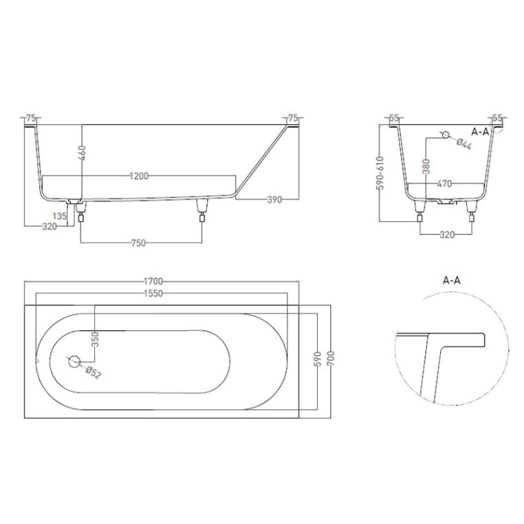 Ванна Salini Ornella 170x70 102313M S-Sense