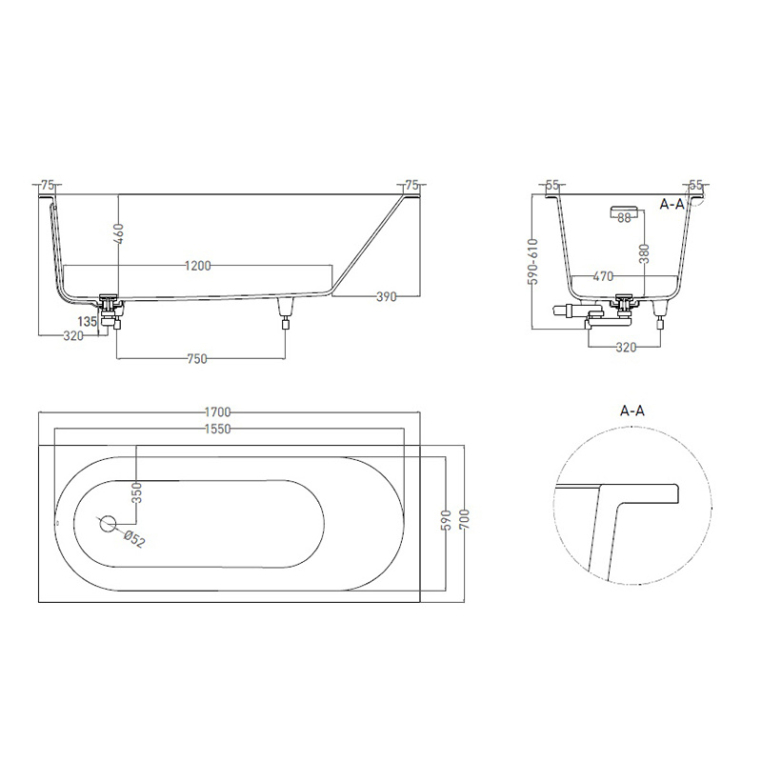 Ванна Salini Ornella 170x70 102413M S-Sense