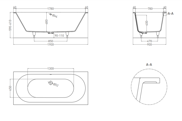 • Ручки для ванны нет