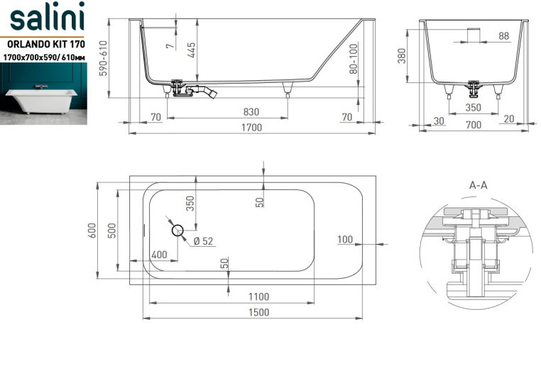 • Длина 1700 мм