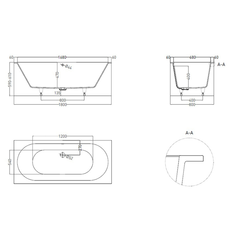 Ванна Salini Ornella 180x80 103411M S-Sense