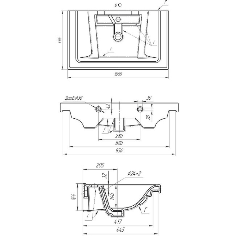 Расположение отверстий для смесителя