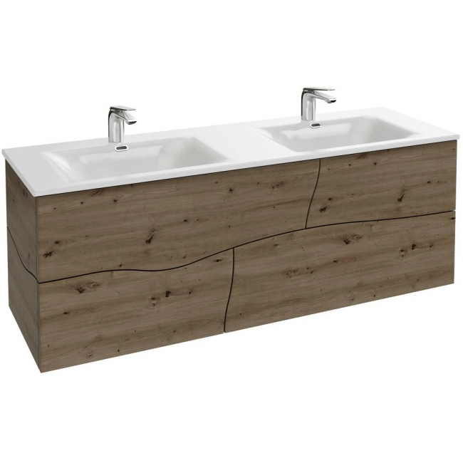 Доступны оттенки «натуральный дуб» и «состаренный дуб». Сюда входят мебель под раковину, шкафы-колонны, зеркала, полочки и аксессуары. Мебель под раковину с оригинальной формой ящиков оснащена системой push-to-open и доступна в размерах 100, 120 и 140 см.