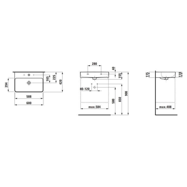 Раковина VAL, 600х420 мм, с отв. для смесителя, цвет белый