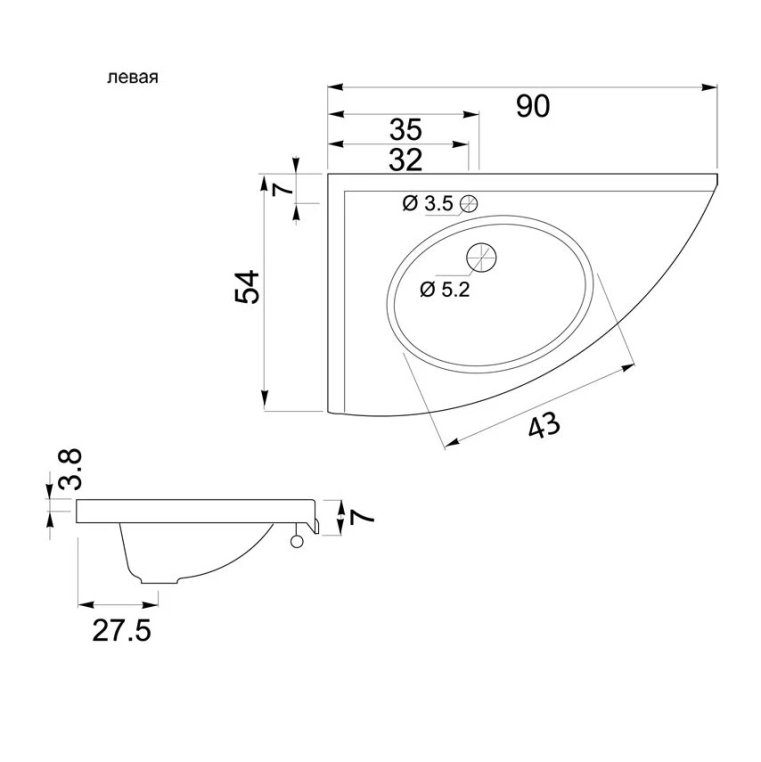 Раковина - столешница Aquanet Ибис левая 00158988