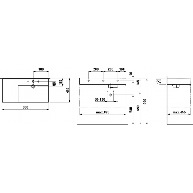 Laufen Kartell by 8.1033.9.759.112.1 Раковина универсальная, с левой полочкой, подходит для монтажа к стене, на столешницу или мебельное подстолье. Размер 90х46х12 см. Цвет серый матовый. Без перелива, без отверстий под смеситель.