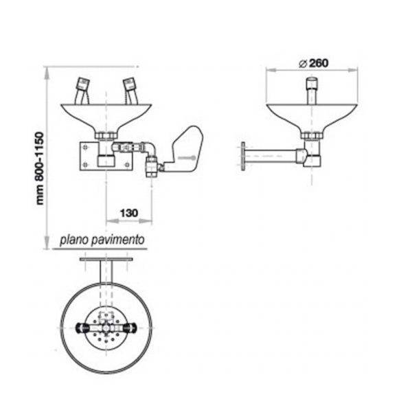 Раковина настенная для промывки глаз Nofer SC300SS. Предназначена для заводов, фабрик, лабораторий, где есть риск нанесения вреда здоровья рабочему персоналу от огня, кислот, и прочих химических или радиоактивных реагентов. Приводится в действие с помощью бокового рычага.