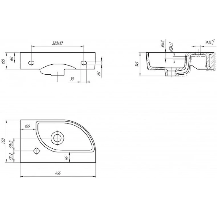 Расположение отверстий для смесителя