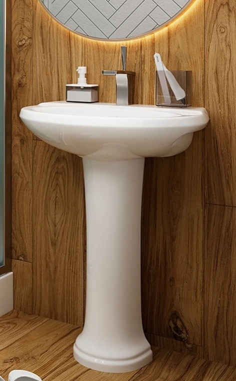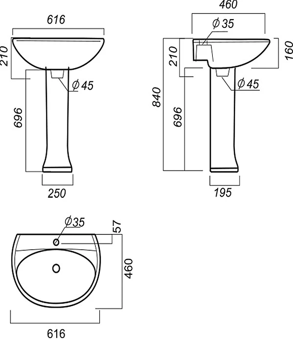 В комплект поставки входят крепления для установки и кольцо перелива. Смеситель и пьедестал в комплект поставки не входят и приобретаются отдельно.