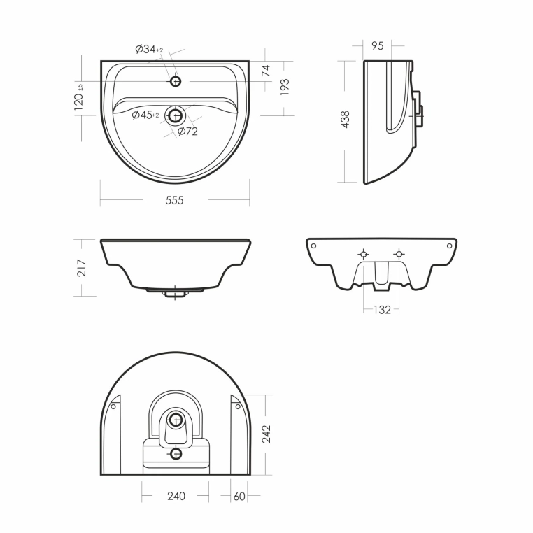 Раковина Sanita Эталон 55 ETL55SAWB01