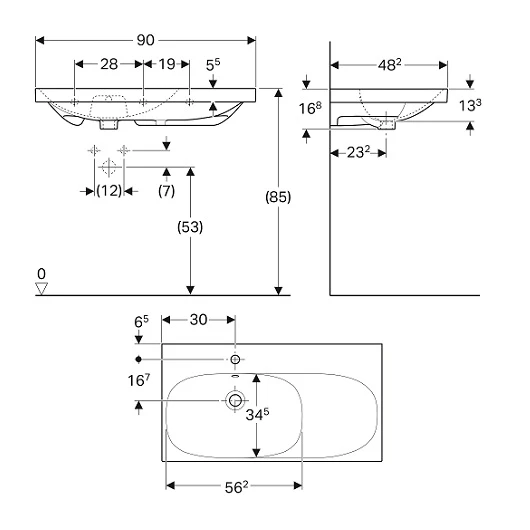 Раковина может использоваться с тумбами 500.612.01.2, 500.612.JK.2, 500.612.JL.2.
