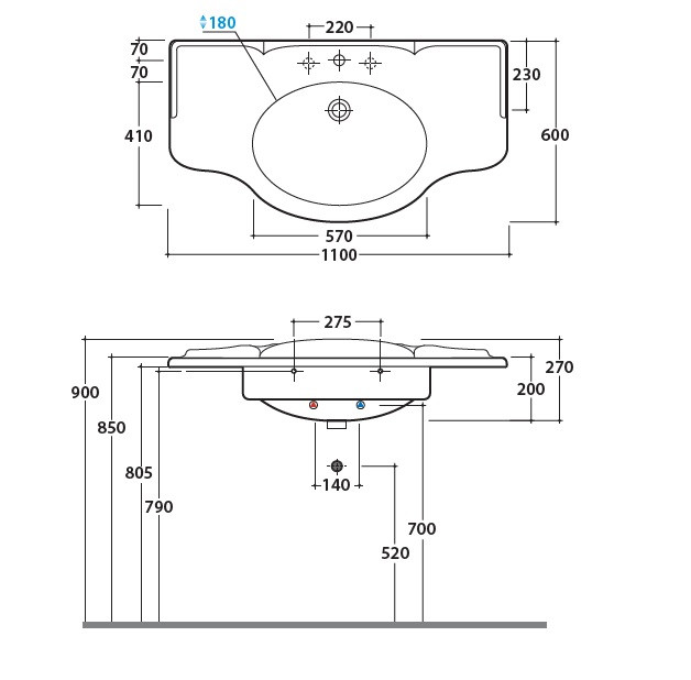 Расположение отверстий для смесителя
