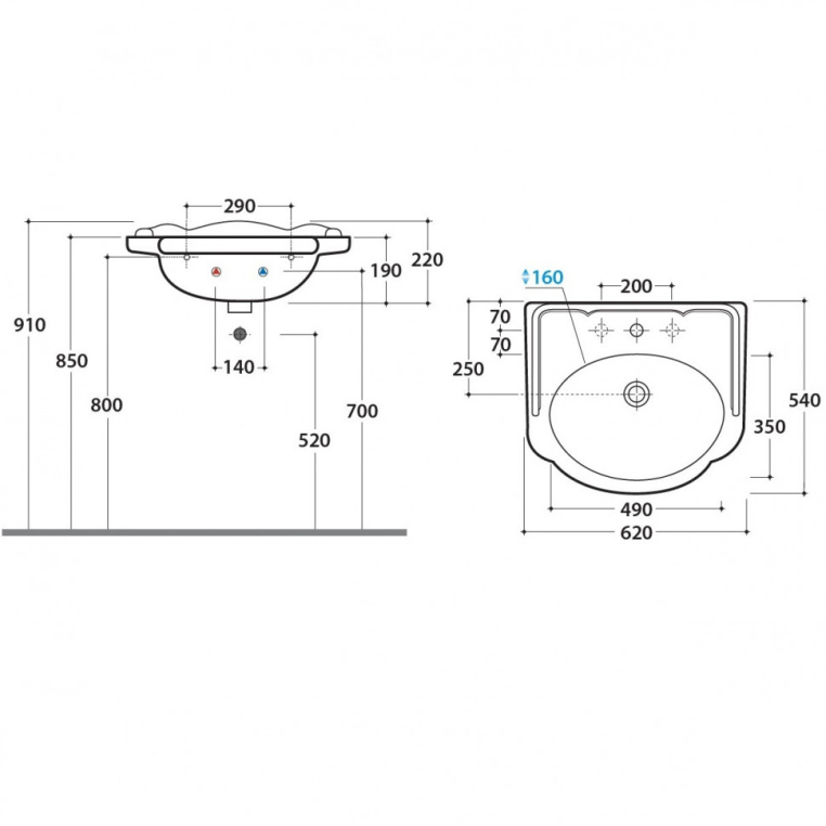 Раковина подвесная Globo PA057BI PAESTUM 62.52, 1 отверстия под смеситель