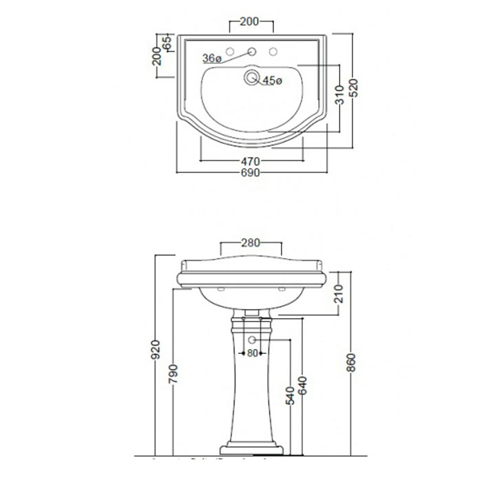 Раковина Kerasan Retro 69х52 см, 1 отв., белый 104601*0