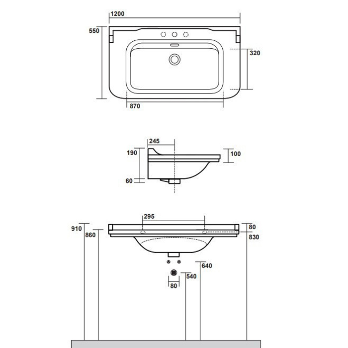 Раковина Kerasan Waldorf 120х55 см, 1 отв., керамическая, белый/золото