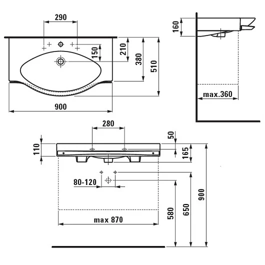 Раковина подвесная Laufen Palace NEW 90x51 с полотенцедержателем 8.1270.2.000.104.1