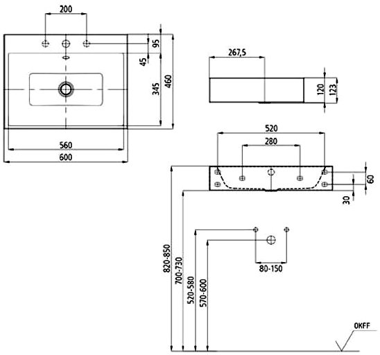 Раковина настенного монтажа Puro с 1 отверстием под смеситель с самоочищающимся покрытием и звукоизоляцией alpine white, эмалированная внутри и снаружи