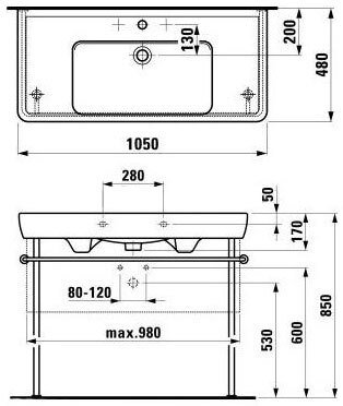 Раковина подвесная Laufen Pro 105x48 8.1395.8.000.104.1