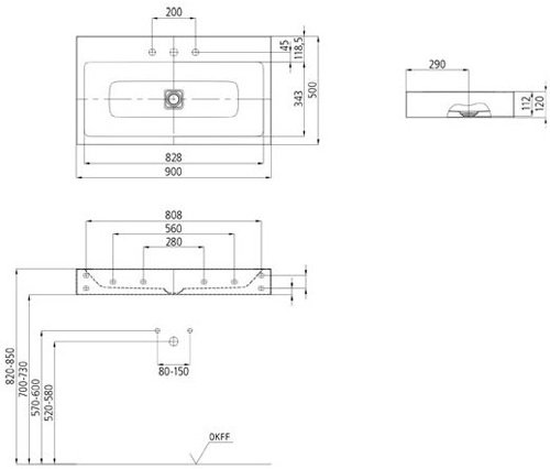 Расположение отверстий для смесителя