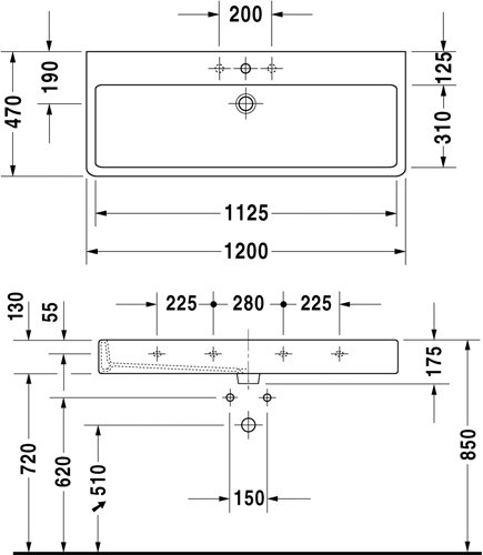 Раковина для мебели Duravit Vero 120x47 0454120000