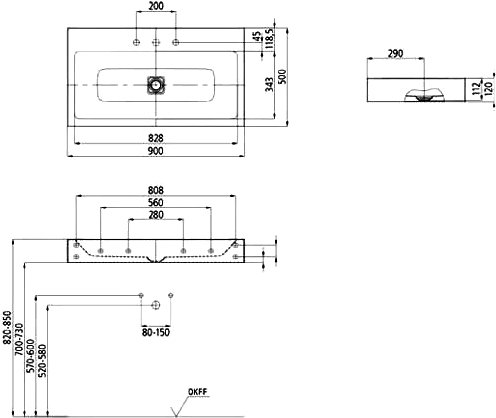 Раковина подвесная Kaldewei Centro 90x50 mod. 3062 903506013001