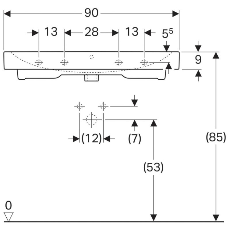 Раковина подвесная Geberit (Keramag) iCon 90 124093000 с переливом, без отверстия под смеситель, белая